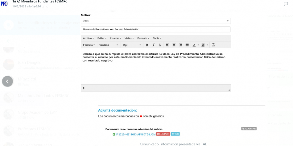 Prensa Educativa - FESMRC Se acercan las elecciones y otra vez el pueblo Argentino va a brindar su voto a quienes ostentan representarnos. En FESMRC nos preguntamos, al ingresar a la página del ministerio de educación de la nación y ver las presentaciones del mismo, y el Currículum de nuestro Honorable Ministro Perczyk, con 25 años de educación no formal y formal, ex Secretario de Políticas Universitarias, si aun recuerda, quizá, que los Ciudadanos también entramos en la fórmula de lo que debería interesarle y no somos, utilicemos una frase de Los Simpsons "el viejerio de bajos ingresos", la peste, eso que parece que le molesta a los políticos, es decir, los que queremos hacer, los que queremos un país, los que queremos salir adelante. Tal es la impunidad hoy de estos políticos, que el día 21/04/2022 se hizo una presentación, expediente 2022-38812330-APN-DGDYD#JGM solicitándole una reunión urgente considerando que se estaba violando la ley en materia educativa y se estaba restringiendo el acceso de nuestros alumnos becados y de los alumnos que no pertenecen a la elite, a la educación, es decir, estamos perdiendo la equidad y la igualdad. Es interesante, que durante la consulta el expediente el día 3/05 - 6/05 - 10/05 y 25/05, solo el Presidente de la Fundación ESMRC, Lic. Maximiliano Racciatti, realizó consultas de expediente con las constancias: RE-2022-46517207-APN-DGDYD#JGM, RE-2022-44824031-APN-DGDYD#JGM, RE-2022-43111649-APN-DGDYD#JGM. Debido a esto, el día 10/05/2022 se agrego un trámite, el IF-2022-46511774-APN-DTD#JGM con la denominación RECURSO DE RECONSIDERACIÓN - RECURSO DMINISTRATIVO en la que se le informa al Ministro de Educación de la Nación que conforme el Artículo 10 de la Ley de Procedimiento Administrativo se realiza la presentación debido a su falta de respuesta. Al consultar el Expediente el 25/05/2022 nos llamó poderosamente la atención que el trámite IF, es decir, el trámite asociado, siquiera tiene reporte dentro del TAD, claramente conveniente para quienes quizá no guardan una copia de las gestiones que cargan, caso que no se vincula a la actuación de FESMRC. Es terrible considerar que tenemos un Ministerio de Educación que no se toma la molestia de recibir a una Fundación Educativa basada en Becas para poder discutir el asunto de una Clase Internacional, cuando incluso el Slogan del Ministerio es (...)una educación cada vez más inclusiva y generadora de oportunidades para todas y todos, nosotros nos preguntamos quiénes son todas y todos, para quién generan las oportunidades, y donde está la inclusión, si justamente se está evitando en este caso discutir un asunto que claramente es sobre la inclusión, la generación de oportunidades para todas las personas, para todos los habitantes y sin embargo, irrelevante para nuestro Honorable Magister en Educación. Una nota de la Fundación, Un recurso de Reconsideración y la Ausencia total de Respuesta por parte del Ministro de Educación de la Nación. ¿Estamos seguros de a quienes votamos?, parece que ellos no están seguros a quienes ponen a la cabeza de los Ministerios más importantes que tenemos.